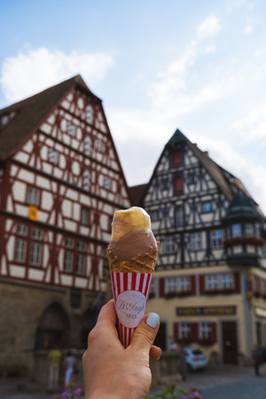 Postanek v srednjeveškem mestecu Rothenburg naju je okrepčal s pravljičnimi uličicami in sladoledom! Kot fun fact: Tukaj je bil sneman del Harry Potterja, ki pa ni pristal v končni verziji filma in je del romantične ceste skozi južno Nemčijo.