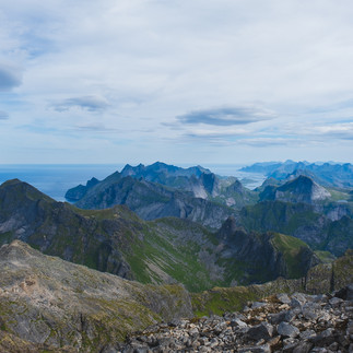 Naslednji dan vstaneva šele okrog 8.00 zjutraj. Res si ga vzameva na izi, saj veva, da naju čaka še najzahtevnejši del poti. Po zajtrku spakirava mali nahbtniček in ostalo opremo pustiva v šotoru. Pot naprej se vije čez kar nekaj vzponov in spustov ter postaja vedno težavnejša. Je slabo označena in nezavarovana. Čeprav veliko hodiva po Slovenskih hribih, se nama je zdela tehnično težavna in tudi kondicijsko precej zahtevna, saj moras premagati kar nekaj višincev (celotna pot jih ima okrog 2000 in je dolga 20 km). Za nameček pa je še mestoma izpostavljena in sva pogrešala lepo urejene slovenske poti z jeklenicami in klini. Tukaj je teren večinoma krušljiv pesek in visoke gladke skale. Po dveh urah zahtevne hoje naposled le prideva na vrh in odpre se prekrasen razgled na otočje. Stojiva va vrhu Lofotov! Po malici in slikah, se odpraviva nazaj, saj veva, da naju do avta čaka še dolga pot. In res je bila zelo dolga! Ko si ponovno nadaneva nahrbtnike z vso opremo, so se zaradi utrujenosti zdeli še težji pa tudi hrano sva vso pojedla že pri šotoru. Lačna sva pot do avta nadaljevala z vmesnimi postanki in sanjala o tem, kako si bova skuhala en lonec pašte, ko prideva nazaj.